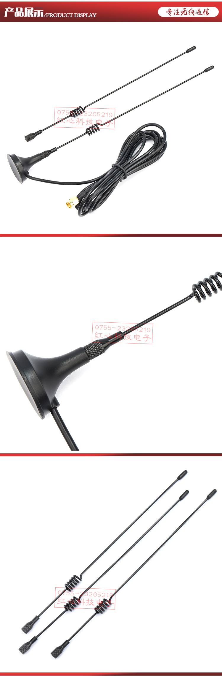 深圳市紅心科技電子有限公司專注于天線研發、生產、銷售,是綜合一體化高科技企業。 主要產品有315M天線、433M天 線、470M天線、868M天線、915M天線、2.4G天線、2G天線、 GPRS天 線、GSM天線、3G天線、LTE/4G天線、5G天線、5.8 G天線、RFID天線、GPS北斗內外置天線;包含 FPC天線、PCB天線、彈簧天線、銅管天線、陶瓷天線、膠棒天線、吸盤天線、車 載貼片天線以及 GPS導航天線和連接線、饋線、轉接線、射頻同軸線接頭等通訊配件和 通訊設備射頻器件的研發生產。